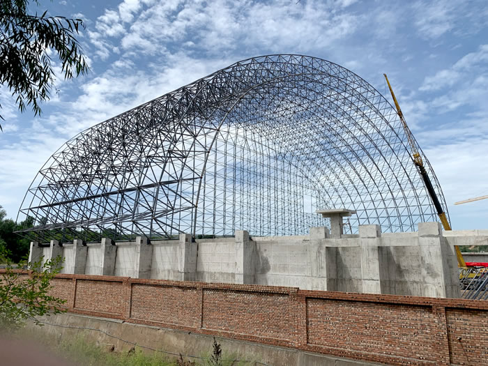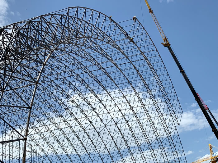 (2)网架加工前应对现场尺寸进行复测,确认无误后方可进行加工、安装;网架制作、运输、安装应遵守《空间网格结构技术规程》JGJ7-2010、《钢网架遵化螺栓球节点》JG/T 10-2009、《钢网架遵化螺栓球节点用高强度螺栓》 GB/T 16939-2016、《遵化钢结构遵化工程遵化施工规范》 GB50755-2012、《遵化钢结构遵化工程遵化施工质量验收标准》 GB50205-2020。